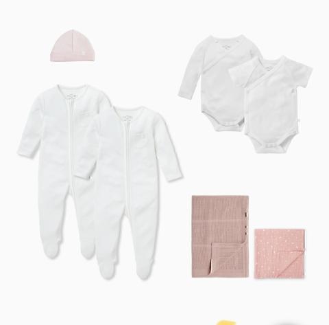 2 pijamas (zippés pour les jeunes parents maladroits!) et 2 bodys en coton bambou extensible ultra doux.