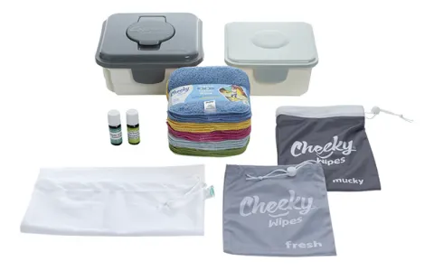 - 1 boîte à ouverture facile pour les lingettes usagées – avec 1 pochette en filet pour la machine à laver - avec 1 pochette en filet pour la machine à laver