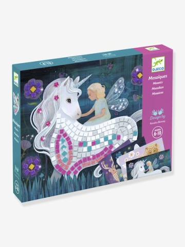 Un coffret pour s’initier à l’art de la mosaïque. 4 tableaux à décorer en collant des petits carrés de mousse pailletée et des strass. L’enfant rep