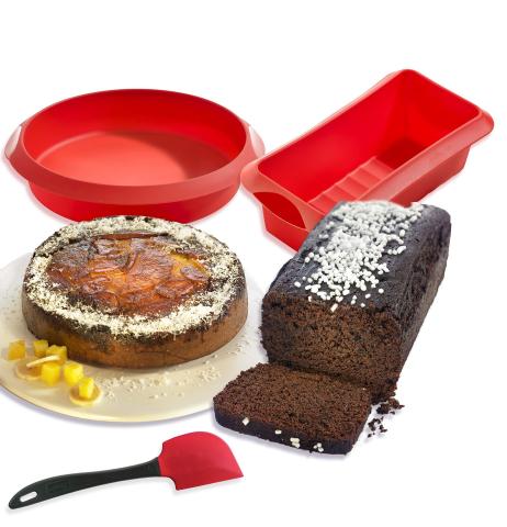 Kit de deux moules en silicone et d'une spatule pour avoir tout le nécessaire pour se préparer des bons gâteaux d'anniversaire l'un à l'autre (et aux autres) 😉