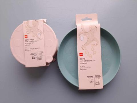 Un bol et une assiette avec ventouses pour apprendre à manger tout seul.
