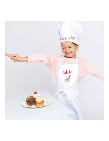 A la recherche d'un cadeau personnalisé pour votre petit cuisinier ? Optez pour notre kit de cuisine composée d'une toque et d'un tablier personnalisé.