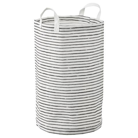 IKEA - KLUNKA, Sac à linge, blanc, noir, Le revêtement intérieur en plastique protège de l'humidité. Vous pouvez utiliser ce panier à linge pour ranger d'autres objets tels que les jouets de votre enfant. Ce panier à linge est très simple à ranger. Il suffit de le replier.