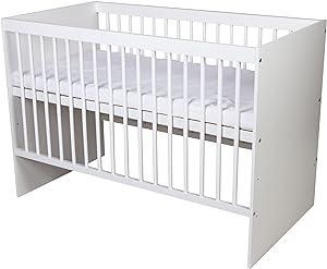 KMbaby Lit Tany Blanc 120 x 60 cm - Lit bébé avec sommier à lattes 3 niveaux réglables en hauteur - Bois de pin laqué : Amazon.com.be: Cuisine et maison