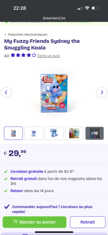 Ce produit est extrait d'une liste de cadeaux (Anniversaire, Noël, ...) déposée sur Kadolog. Kadolog permet de créer des listes de cadeaux (Anniversaire, Noël, ...) en toute liberté. Il est possible d'ajouter toutes vos envies cadeaux et de recevoir les dons directement sur votre compte. Avec les dons reçus, vous êtes alors libre d'aller acheter vos produits (comme ce 'Koala ') où et quand vous le souhaitez.