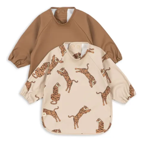 Nouveau ! Retrouvez sur Smallable : Konges Sløjd - Bavoirs à manches Tigre - Set de 2 - Brun. Label Greenable. Découvrez aussi notre sélection de maison.