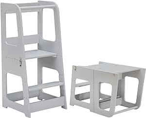 KYWAI®Tour d'Observation Montessori en bois, Convertible en Bureau et Tabouret couleur gris.