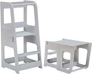 KYWAI® Tour d'Observation Montessori: Tour d'apprentissage Transformable pour Enfants en Bois, Convertible en Bureau et Tabouret. Structure Solide pour Assistance en Cuisine, Barre de Sécurité (Gris) : Amazon.com.be: Cuisine et maison