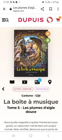 Ce produit est extrait d'une liste de cadeaux (Anniversaire, Noël, ...) déposée sur Kadolog. Kadolog permet de créer des listes de cadeaux (Anniversaire, Noël, ...) en toute liberté. Il est possible d'ajouter toutes vos envies cadeaux et de recevoir les dons directement sur votre compte. Avec les dons reçus, vous êtes alors libre d'aller acheter vos produits (comme ce 'La boîte à musique tome 5 ') où et quand vous le souhaitez.