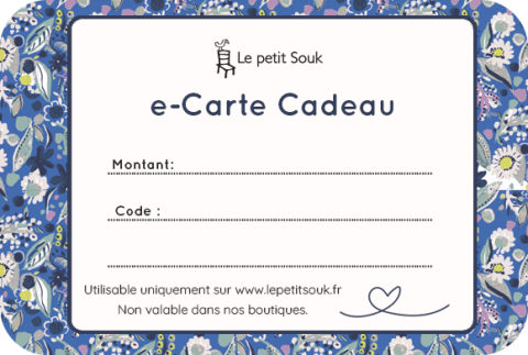 en toute liberté. Il est possible d'ajouter toutes vos envies cadeaux et de recevoir les dons directement sur votre compte. Avec les dons reçus, vous êtes alors libre d'aller acheter vos produits (comme ce 'La e-Carte Cadeau Le petit Souk
