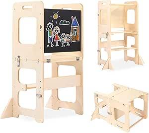 Labebe Tour d'apprentissage Montessori pour enfants à partir de 18 mois, pliable, 3 en 1, tabouret d’apprentissage avec tableau, ustensile de cuisine, en bois : Amazon.com.be: Bébé et Puériculture