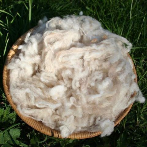 Laine Lavée - La Laine fleurie : la laine de Natagora (locale, donc). Mais elle peut aussi venir des moutons de vos voisins/amis/connaissances qui n'en font rien pour autant qu'elle soit déjà lavée. J'en souhaite environ 3kg pour me fabriquer une marmite norvégienne (j'ai ça en tête depuis au moins 5 ans, il serait temps de le réaliser !). J'ai déjà les tissus à la maison et j'ai déjà une cocotte en fonte circulaire, il me manque juste le rembourrage !