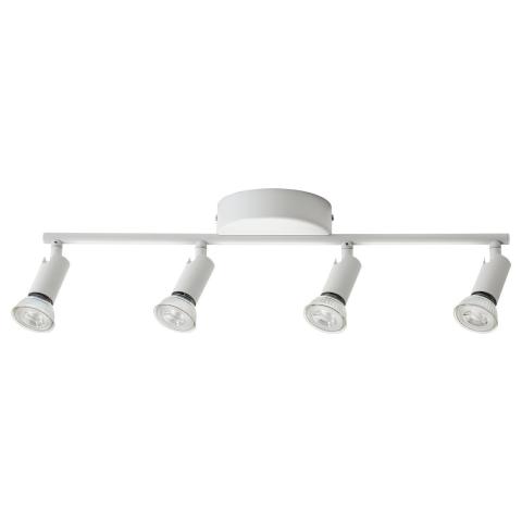KRUSNATE plafonnier 4 spots, blanc Ce rail à 4 spots est presque invisible sur un plafond blanc et donne de la lumière où vous voulez puisque chaque spot peut être dirigé individuellement. Il convient aussi bien dans une entrée qu'au-dessus d'un îlot de cuisine.