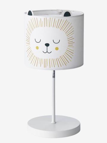 Lampe de chevet Lion beige - Posé sur un meuble ou sur une table de chevet, cette petite lampe illuminera la chambre en douceur ! On craque pour la bouille de ce petit lion tout mignon et s