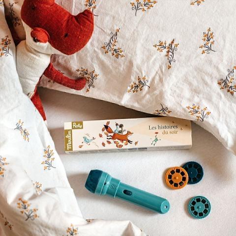 Une lampe à histoires façon projecteur, avec trois disques d’images pour inventer des aventures sur le mur ou le plafond. Trois histoires captivantes incluses autour d’un univers enchanteur, pour des soirées pleines de magie.