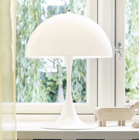 La lampe Panthella 320 de Louis Poulsen. Un magnifique classique pour son espace à langer au début (pour la changer en douceur au mileu de la nuit grâce à sa lumière douce et diffuse) et pour sa chambre ensuite.