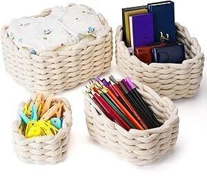 Lannvan Lot de 4 Panier Rangement Tissé en Corde Coton - Panier Rangement Bébé - Paniers de décoration - Rangement pour cuisine, salle de bain, chambre à coucher,blanc : Amazon.fr: Cuisine et Maison