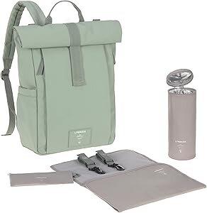 LÄSSIG Sac à langer Sac à langer avec matelas à langer, fixation pour landau, porte-biberon Produit durable/Rolltop Up Backpack vert argent, Vert argenté, Verde argento : Amazon.com.be: Bébé et Puériculture