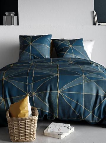 Une touche d'élégance à votre intérieur ! - Parure de lit 2 personnes - En coton 57 fils - 1 housse de couette 240 x 220 ou 260 x 240 cm - 2 taies d'oreillers 63 x 63 cm - Imprimé géométrique - Fermeture par boutons