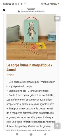 Ce produit est extrait d'une liste de cadeaux (Anniversaire, Noël, ...) déposée sur Kadolog. Kadolog permet de créer des listes de cadeaux (Anniversaire, Noël, ...) en toute liberté. Il est possible d'ajouter toutes vos envies cadeaux et de recevoir les dons directement sur votre compte. Avec les dons reçus, vous êtes alors libre d'aller acheter vos produits (comme ce 'Le corps humain magnétique ( Amalya & Isalie) ') où et quand vous le souhaitez.