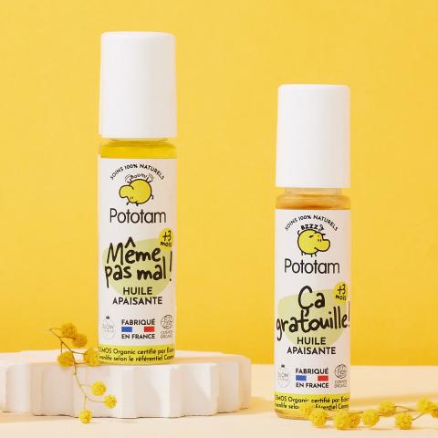 Deux roll-ons 100% naturels et biologiques pour parer à toutes les aventures du quotidien : "Même pas mal !" pour les chutes et petits chocs, et "Ça gratouille !" pour les piqûres d'insectes et d'orties. Compacts et faciles à glisser dans un sac.