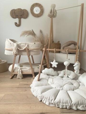 Ensemble couffin + support à bascule + panier à langer + tapis d'éveil + arche d'éveil + 3 ornements