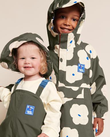 Pour sauter dans les flaques sans vous faire râler. Le pantalon d’aventure hyper-imperméable en matière recyclée, qui aime se mouiller.  2 coloris : imprimé anémones nuages ou color-block kaki et crème.    - Combinaison imperméable, coupe vent et respirante, en polyester recyclé certifié Oeko-Tex et Global Recycled Sta