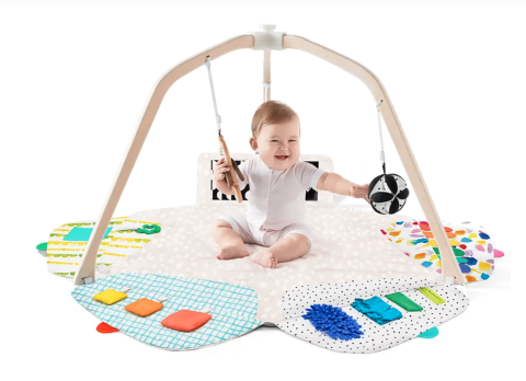 Le Tapis D'éveil Bébé Lovevery primé et d'inspiration Montessori permet une année entière d’activités conçues pour tous les stades de développement de votre bébé. Fait avec des matériaux naturels et du bois certifié FSC.