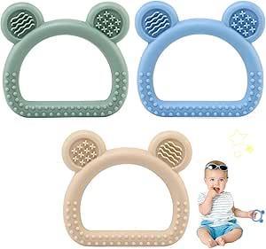 LEADSTAR Lot de 3 jouets de dentition pour bébé - En silicone - Aide à la dentition et anneau de préhension - Pour bébé à partir de 3, 6, 9 mois - Cadeau pour nouveau-né - Bleu, vert, kaki : Amazon.com.be: Bébé et Puériculture