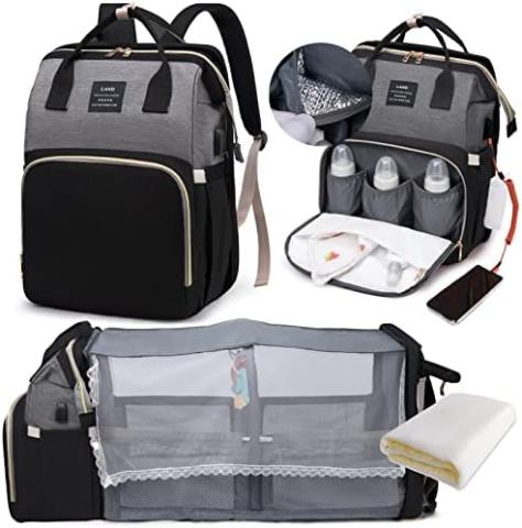 LEcylankEr Sac à dos à langer avec lit bébé – Grand sac à langer avec matelas à langer, sac isotherme, moustiquaire et port de charge USB, Noir et gris., L : Amazon.com.be: Bébé et Puériculture