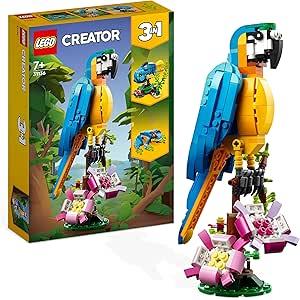 LEGO 31136 Creator 3-en-1 Le Perroquet Exotique, Jouet de Construction, Figurines Animaux de la Jungle, avec Grenouille et Poisson, Jeu Créatif Enfants Dès 7 Ans : Amazon.com.be: Jouets