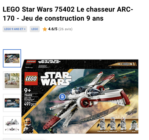 LEGO Star Wars 75402 Le chasseur ARC-170 - Jeu de construction 9 ans au meilleur prix | E.Leclerc