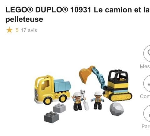 Ce produit est extrait d'une liste de cadeaux (Anniversaire, Noël, ...) déposée sur Kadolog. Kadolog permet de créer des listes de cadeaux (Anniversaire, Noël, ...) en toute liberté. Il est possible d'ajouter toutes vos envies cadeaux et de recevoir les dons directement sur votre compte. Avec les dons reçus, vous êtes alors libre d'aller acheter vos produits (comme ce 'LEGO® DUPLO® 10931 Le camion et la pelleteuse ') où et quand vous le souhaitez.