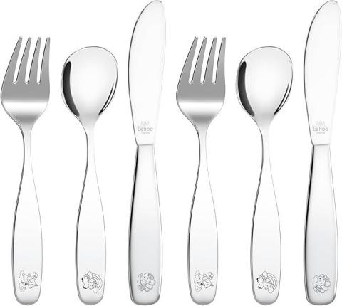 Lehoo Castle Couvert Enfant, 6 PCS Couvert Enfant Inox, 2 x Fourchette Enfant, 2 x Couteau, 2 x Cuillere, Set Couvert Bebe pour Garçons Filles de 3+ Ans : Amazon.fr: Cuisine et Maison