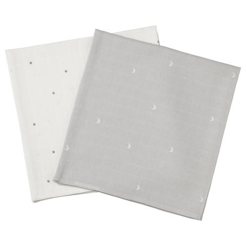 LEN carré mousseline, à pois/Lune, 70x70 cm Carré de mousseline ultra absorbant en coton/viscose, idéal pour le bain, le change ou comme protection de votre épaule au moment du biberon. Très pratique, il se glisse facilement dans un sac ou une poche de vêtement.
