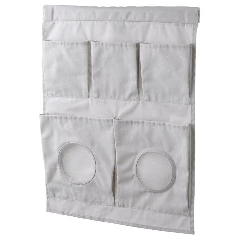 LEN rangement suspendu, à pois/gris clair, 45x64 cm Rangement suspendu en polyester recyclé avec petites et grandes poches pour mettre des savons, des brosses ou des serviettes. Pratique accroché à la table à langer ou à un mur. Facile à assortir à tous les styles et toutes les couleurs.