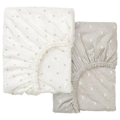 LENAST Drap housse pour lit bébé, à pois, Lune, 60x120 cm. L'élastique maintient le drap en place même si votre enfant bouge et se retourne. Fabriqué en coton cultivé de manière durable, un matériau doux et naturel qui respire et absorbe l'humidité.