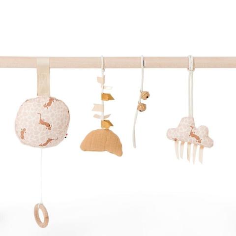 Découvrez nos accessoires d'arche d'éveil fabriqués en France ! Composés de quatre jouets uniques, dont un nuage, des grelots, une demi-lune pouët-pouët, et un coussin musical personnalisable, nos accessoires offrent une expérience sensorielle exceptionnelle à  votre bébé.