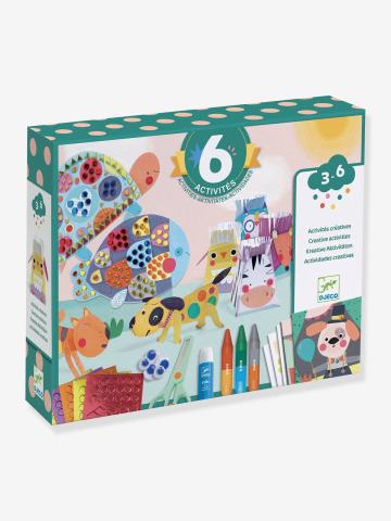 Voici un joli coffret très complet proposant 6 activités créatives sur le thème des animaux et leur maison : collage, coloriage, mosaïques, découpage, assemblage, décalcomani