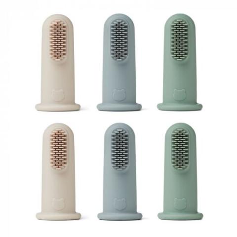 Liewood - Set de 6 brosses à dents à doigt de LIEWOOD. Déclinées en 3 couleurs différentes, ces brosses à dents pour bébé sont fabriquées en silicone 100%...