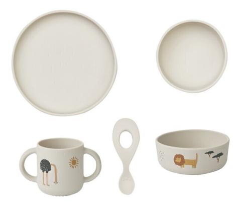 C'est l'heure de se régaler ! Ce set repas Vivi Safari Safari de Liewood est complet, ergonomique et durable. Bébé pourra manger comme un grand à la table familiale.