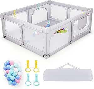 LIFEZEAL Box pour enfants, clôture pour enfants, 189 x 158 x 68 cm, boîte pour bébé, pliable, en tissu Oxford avec sac, grande clôture avec 50 balles et 4 anneaux de jeux pour enfants 0 à 36 mois : Amazon.com.be: Bébé et Puériculture