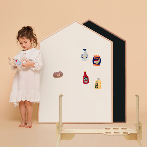 Magnetic whiteboard 'Lille Hus' from Noriter Project x LUDE for little artists. Available exclusively on ludeplay.com. The board has a sturdy wooden edge and a beautiful, large size, so it immediately attracts the attention of children and is an eye-catcher in your interior. This board is double sided and can be used o