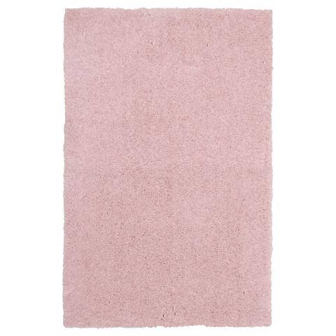 LINDKNUD Tapis, poils hauts, rose. Le velours dense et épais atténue le bruit et constitue une surface douce sous les pieds. La surface sur l'envers maintient le tapis bien en place, ce qui réduit les risques de chute.