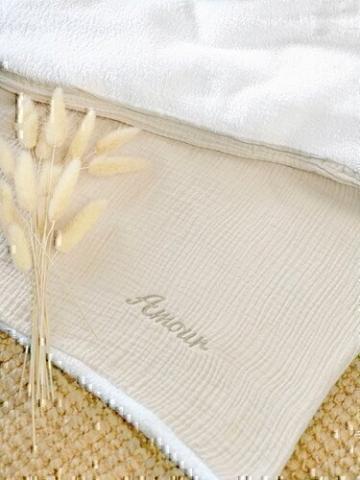 ♡ L'inséparable, couverture doublée, sable On fond pour cette belle idée de cadeau personnalisée, une couverture en gaze de coton et moumoute ! Une vaie petite bulle de confort et de douceur pour vos poupons! Agréable, bien chaude et douillette pour un hiver cocconing.Un cadeau personnalisé, qui se gardera au fil des années. Détails: Matière en moumoute toute douce et gaze de cotonBroderie à personnaliser Un côté moumoute et un côté gaze de coton Conseils & entretien :intérieur 100% cotonexterieur 100% polyester Couverture décorative