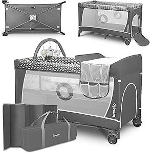Lionelo Flower Reisbed voor baby's met zijingang, luiertafel, twee hoogtes matrasophanging, boog met speelfiguren, wielen, draagtas : Amazon.com.be: Babyproducten