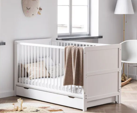 Lit bébé évolutif Bois blanc 3 en 1 fabriqué en Europe ✔ De 0 à 6 ans ✔ Tiroir et barrière en option, à partir de 189€ | Petite Amélie