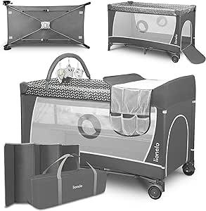 LIONELO Flower deux hauteurs de matelas, entrée latérale, barre avec jouets, table à langer, sac de transport, système de pliage rapide