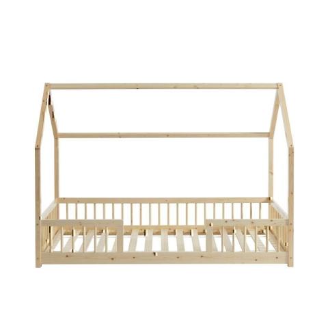 Lit cabane avec barrières TINY pin massif 90x190 sommier inclus