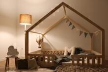 Un magnifique lit cabane avec son entrée centrale et ses barrières sécurisantes qui créent un espace cocooning !